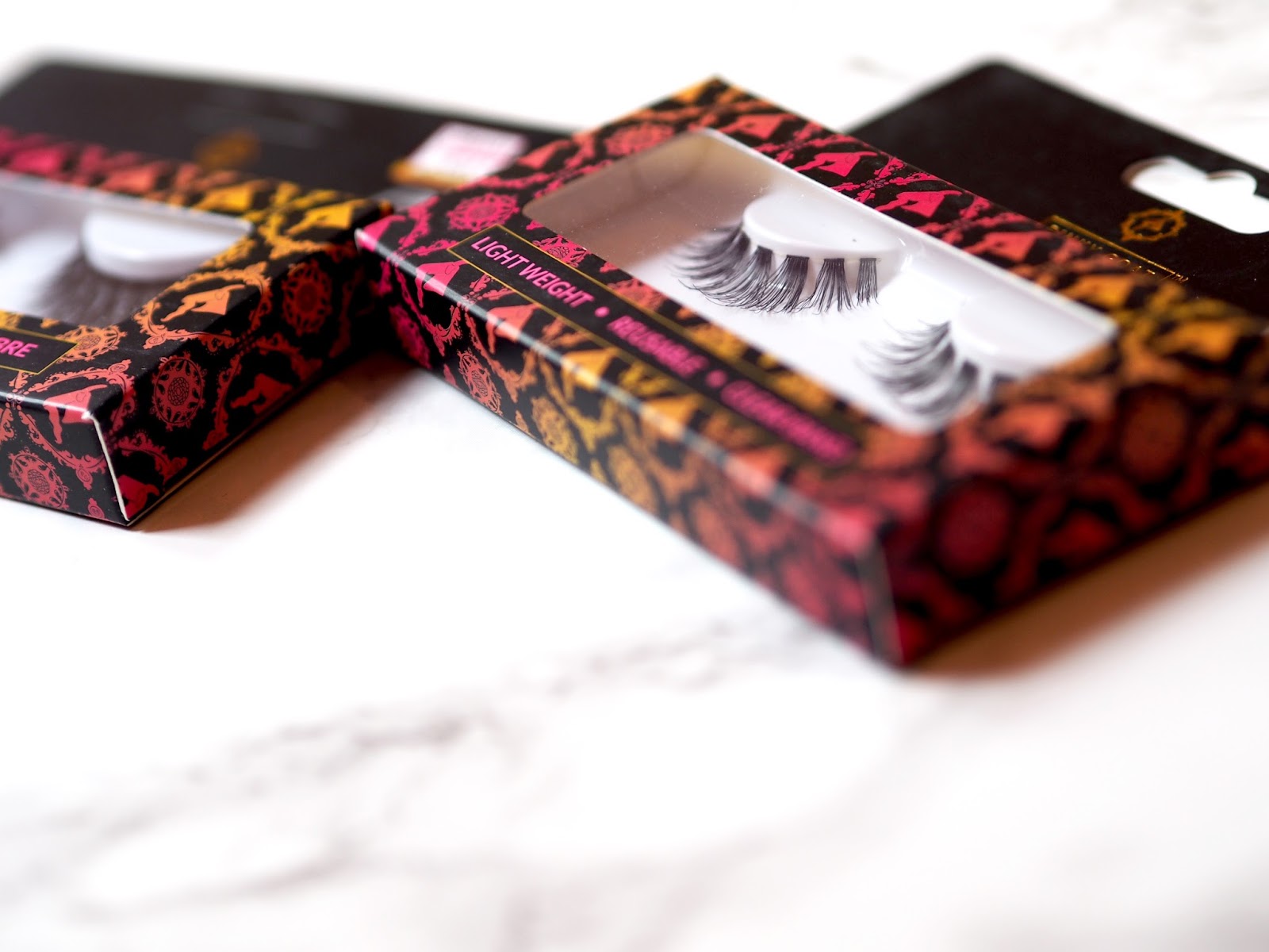 The first lashes I was sent were named 'ARWA'. These lashes claim to offer a extra flair to your eye look. Their unique range of double layered cross hair lashes are designed to add volume to your lashes and the thick black band intensifies a look. The lashes are made out of silk fibres as well which not only gives a high quality finish, but also makes them feel very soft and light when being worn. My first impression of these lashes were how extreme they appear, but seeing as the claims are for intense looks they certainly look the part. Before trying them out I also thought that they would be heavy on the eyes but they are surprisingly light. Overall, these lashes are perfect for a night out and make any eye makeup look dramatic and intense. These lashes are priced at £9.99 and are a best seller.